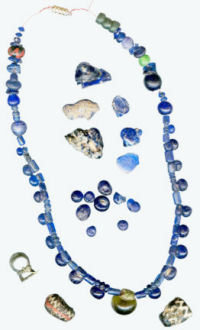 Eines der eindrucksvollsten Beispiele für den Ertrag aus kontinuierlicher Fundplatzbegehung über einen langen Zeitraum dokumentiert die Abbildung der Kette aus vorwiegend blauen bzw. kobaltblauen Glasperlen. Im Laufe von 35 Jahren fand Eugen Schenkel auf einem ! Fundplatz nördlich von Trebur mehr als 150 Stücke nur durch Fundauflesungen ("Glasschlacken, kleinteilige Rohglasfragmente, zahlreiche kleinteilig zersplitterte Glasfragmente, zahlreiche Glastropfen und Glasperlen"), von denen etwa 60 Perlen zu der abgebildeten Kette aufgezogen wurden. Die Funde werden in das 4. bis frühe 5. Jahrhundert datiert. Sie stammen also aus der Endphase der römischen Militärpräsenz rechts des Rheins und werden den Alamannen zugerechnet.